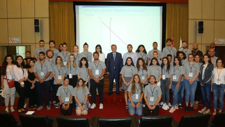 نظمت وزارة الخارجية والمغتربين في إطار "برنامج السياحة السياسية" الذي تنظمه، جولة للطلاب الـ33 المشاركين من أنحاء العالم على مصرف لبنان، حيث كان لهم لقاء مع حاكم مصرف لبنان رياض سلامة الذي شرح عن تاريخ الليرة اللبنانية وكيف كان وضعها قبل الحرب اللبنانية والأزمات التي مرت على لبنان وأدت إلى زعزعة الثقة بها، وصولا إلى إعادة تثبيت وضع الليرة بعد الحرب وصولا إلى مرحلة التعامل بالدولار في الأسواق.