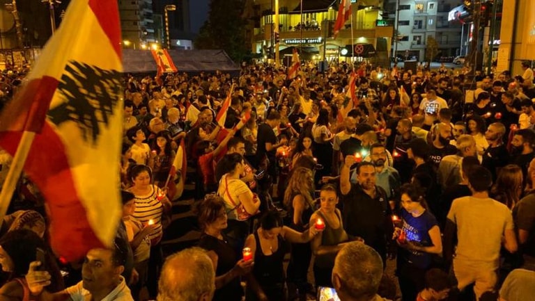 بالصورة: المتظاهرون يضيئون الشموع في ساحة ساسين في الأشرفيّة