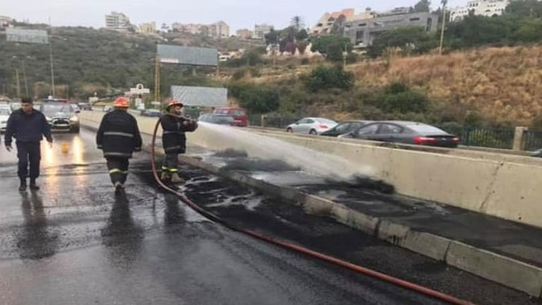 أفادت "الوكالة الوطنية للاعلام" بأنّ عناصر الدفاع المدني أخمدت، حريق اطارات كان محتجون قد أشعلوها فجراً على المسلك الغربي لأوتوستراد ادما - كسروان. ويشهد المكان زحمة سير خانقة.