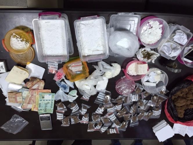 بالتحقيق معهم اعترفوا بما نُسب إليهم، وضبط بحوزتهم ومن داخل سيارة نوع سوبارو لون زيتي مركونة أمام الغرفة المذكورة كمية من المخدرات: 1111 غرام من حشيشة الكيف، 851 غرام كوكايين، 181 حبة مخدرة، 5.5 غرام مارجوانا، بالإضافة إلى رمانة يدوية، ميزان حساس، دراجتين آليتين، سيارة السوبارو المذكورة، جهاز خليوي ومبلغ من المال.