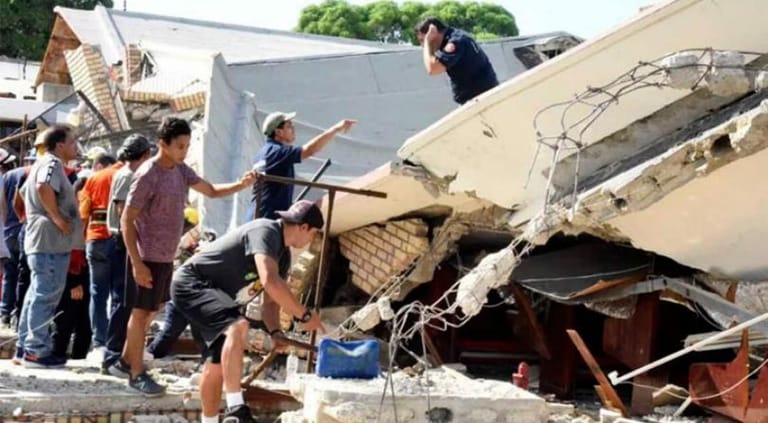 Local media showed footage of dozens of people trying to hold up part of the collapsed structure with poles while others made their way through the wreckage in search of survivors.