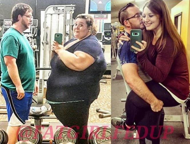 Documenting her progress on Instagram as 'Fat Girl Fed Up', one of Reed's most recent posts celebrated the couple's achievements by sharing a shocking before-and-after picture.