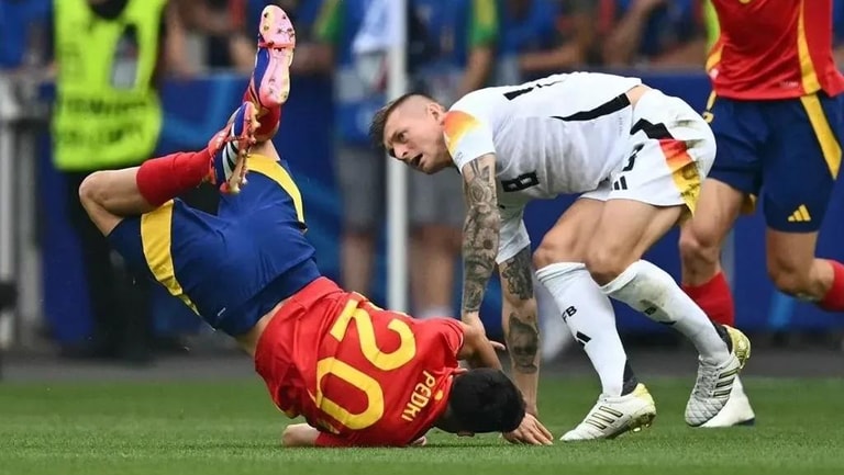 وخرج بيدري مصاباً بعد مرور 8 دقائق فقط بعد تدخل عنيف من كروس خلال مباراة المنتخبين التي جمعتهما يوم الجمعة الماضي، ضمن الدور ربع النهائي لبطولة "يورو 2024"، والتي انتهت بفوز منتخب إسبانيا (2-1).