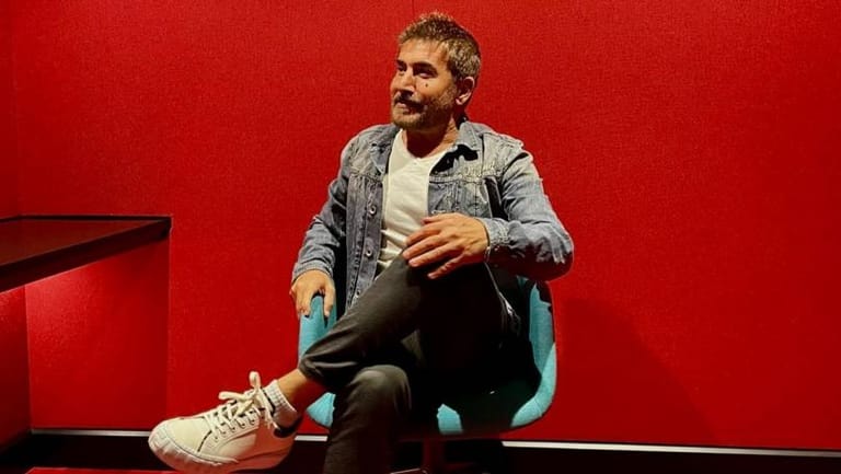 وحرص فهد على التقاط الصورة مع نجليه وفي الخلفية زوجته الإعلامية السورية زينة اليازجي وهي تقدم برنامجها التلفزيوني في لقطة لافتة.