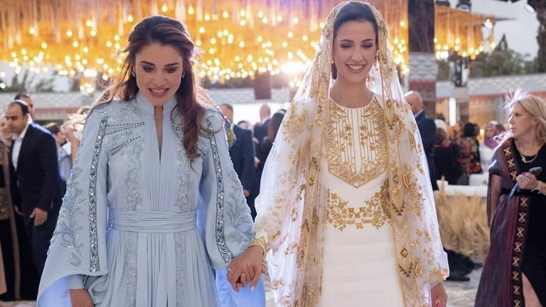 تألقت الملكة رانيا في حفل حنّاء عروس ابنها رجوة آل سيف، وخطفت الأنظار بقفطان من توقيع المصمم اللبناني المبدع سعيد قبيسي.