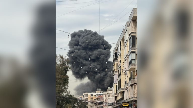 تتابعون في الفيديو المرفق لحظة استهدف مبنيين في الحدت في الضاحية الجنوبية وانهيارهما.