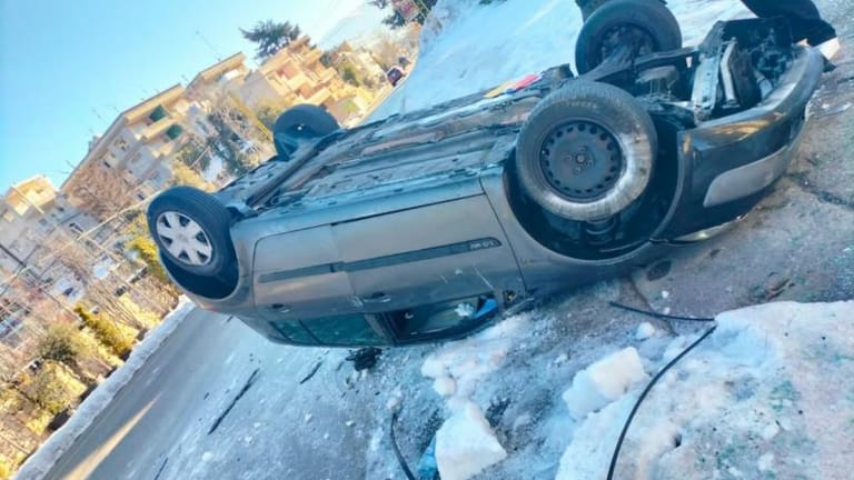 عمل عناصر من الدفاع المدني على تقديم الإسعافات الأولية اللازمة ميدانيًّا لشخصٍ أصيب جراء انقلاب سيارته على طريق عام ميروبا - كسروان.