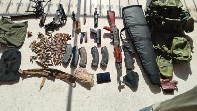 "بتاريخ 9 / 5 /2023، دهمت قوة من الجيش منزل المطلوب (ر.ا.) في منطقة القلمون - الشمال، حيث أوقفته وضبطت داخل منزله بندقية كلاشنكوف ومسدساً حربياً وكمية من الذخيرة والأعتدة العسكرية.