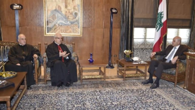استقبل رئيس مجلس النواب نبيه بري، في مقر الرئاسة الثانية في عين التينة، راعي أبرشية صيدا ودير القمر للطائفة المارونية المطران مارون العمار ورئيس المركز الكاثوليكي للاعلام الأب عبدو أبو كسم.