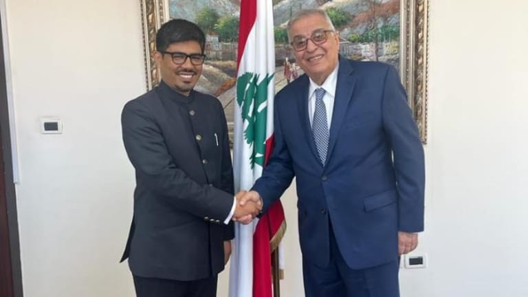 استقبل وزير الخارجية والمغتربين في حكومة تصريف الاعمال الدكتور عبدالله بوحبيب القائم بالاعمال في سفارة الهند السفير محمد نور رحمان شيخ في زيارة تعارف.