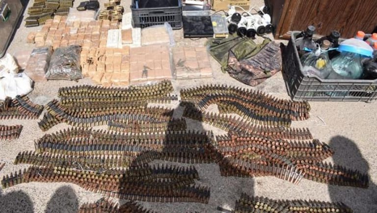 "بتاريخ 9/8/2023، دهمت وحدة من الجيش تؤازرها دورية من مديرية المخابرات منازل مطلوبين في حي الشراونة - بعلبك، وضبطت أسلحة حربية وبنادق صيد وكمية من الذخائر الحربية، بالإضافة إلى كمية من المخدرات وآلات تُستخدم في تصنيعها.