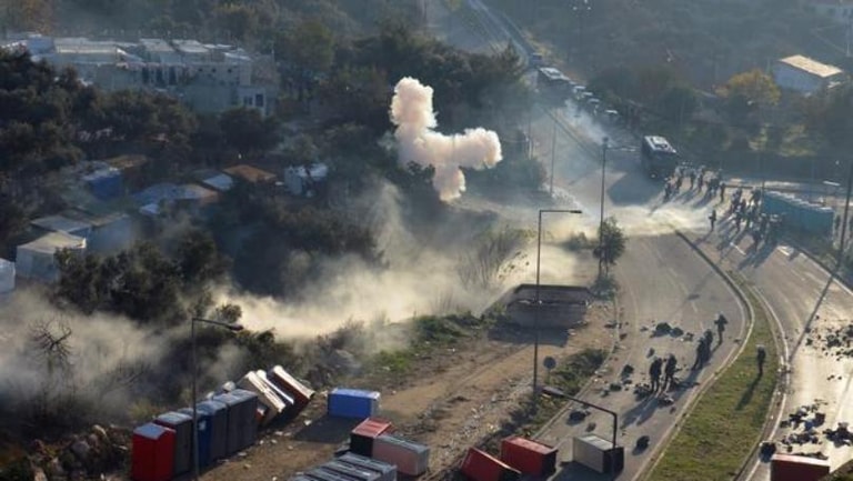Greek police on Thursday fired tear gas at migrants protesting against their detention and living conditions in a migrant camp on the northern Aegean island of Samos, officials said.
