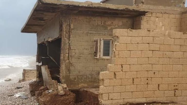 The sea waves, which reached a height of 5 meters, stormed one of the houses of Hay Al-Bahr along the Akkari beach and cracked its walls. This forced its residents to evacuate, and fishing activities have also been suspended.