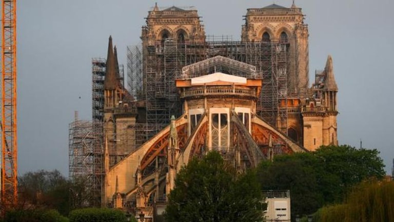 The fire destroyed the mediaeval cathedral’s roof, toppled the spire and almost brought down the main bell towers and outer walls before firefighters brought it under control.