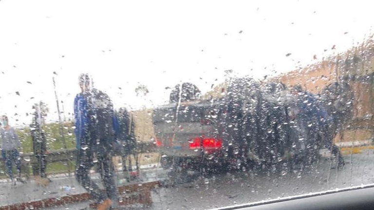 Photo: Car rolls over from Dbayeh Bridge on the highway