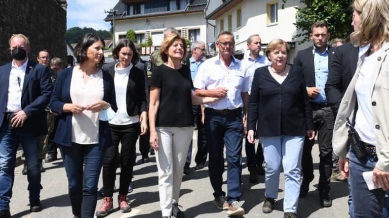 ميركل: صُدمت بأضرار تفوق التصوّر للفيضانات وأعد بإعادة الإعمار
