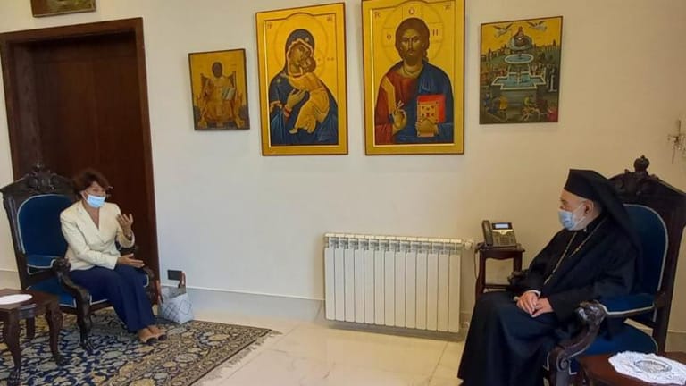 أعلنت مطرانية بيروت للروم الارثوذكس، في بيان، أن "المطران الياس عوده، استقبل السفيرة الفرنسية السيدة Anne Grillo، وكانت الزيارة مناسبة للتباحث في الأوضاع الراهنة".