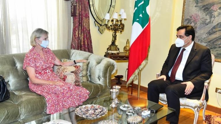 Caretaker Prime Minister Hassan Diab in the afternoon received at his Tallet al-Khayat residence, Swedish Ambassador to Lebanon, Ann Dismorr, with talks reportedly touching on bilateral relations between both countries and general developments.