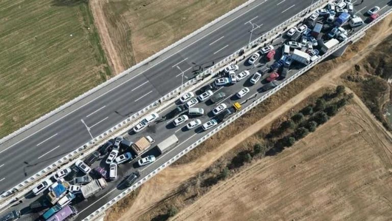 Several cars and trucks were seen crumpled and piled on top of each other on the Zhengxin Huanghe bridge in posts on social media.