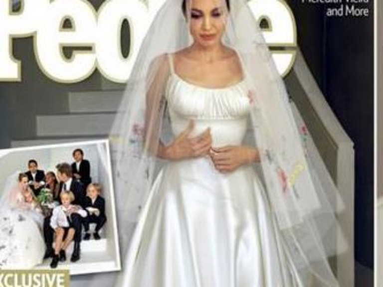 Two magazines, People and Hello, published photos of the August 23 nuptials in France, with both publications featuring front page pictures of Jolie in the stunning Versace wedding gown.