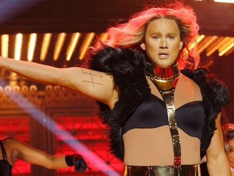 Complete with a blonde wig, black bra, knee-high boots and a feathered shrug, Tatum certainly looked the part and the audience weren't surprised to find he had the Beyonce moves down to a tee considering some of his most memorable roles (Step Up and Magic Mike).
