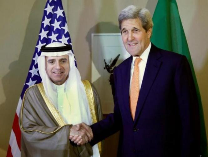 Kerry spoke before a meeting in Geneva with Saudi Foreign Minister Adel al-Jubeir in stepped-up diplomatic efforts to stop a surge in fighting and salvage U.N.-led peace talks brokered by the U.S. and Russia on Feb. 27.