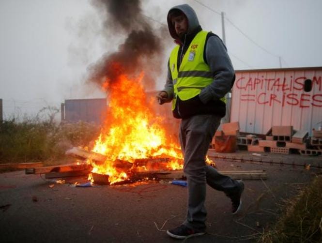 French protesters attacked a police station and smashed bank windows on Thursday at rallies against the reform, while the CGT members sought to choke off fuel supplies.