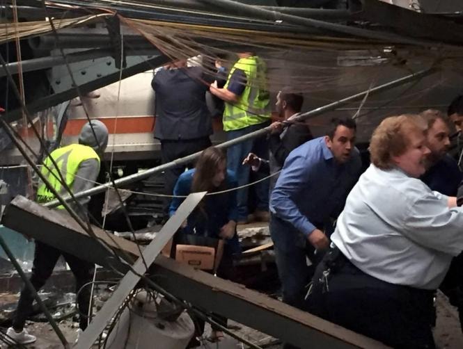 The train reportedly went through ticket barriers and into the reception area of Hoboken station.
