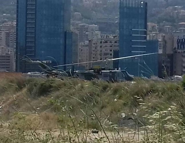 Photo: Lebanese Army helicopter lands on Dbayeh seaside road for unknown reason