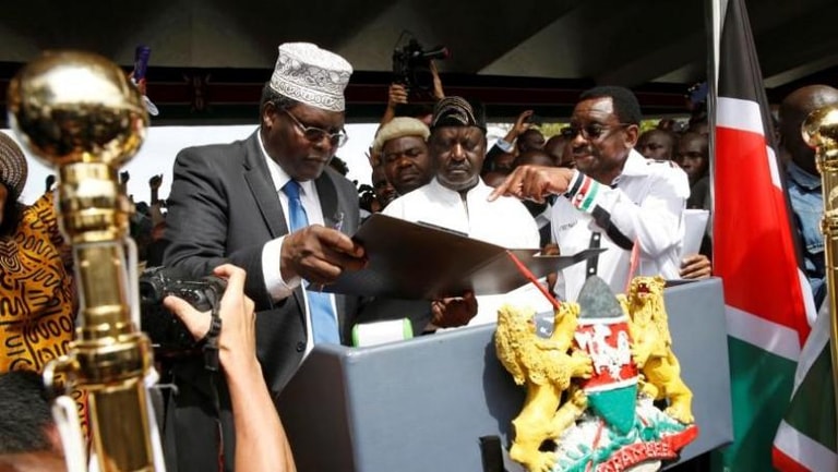 Shortly before his deportation, which came after Odinga enraged the government by staging a symbolic "swearing-in ceremony", Miguna was charged with treason. More than 100 people were killed in unrest after last year's election.