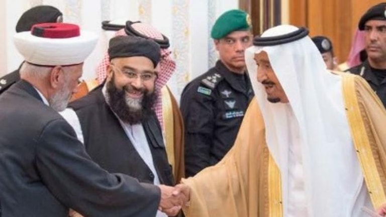 The Custodian of the Two Holy Mosques, King Salman bin Abdulaziz welcomed Grand Mufti Sheikh Abdullatif Derian during a ceremony held at the Royal Court at the Mina Palace, for those who performed Hajj rituals this year.
