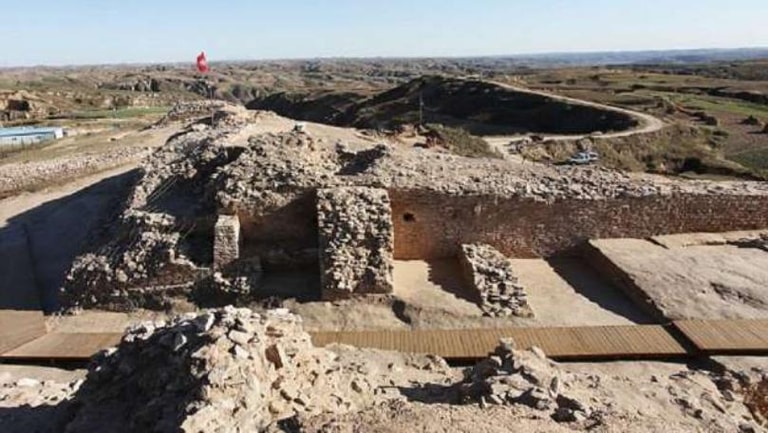 On a ridge above China's Tuwei River, researchers found a massive stepped pyramid that once served as a palace center, along with defensive stone walls, tool-making debris, and several pits filled with sacrificial human skulls.
