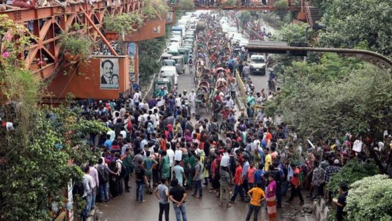 The protests, which saw students directing traffic for days in the choked streets of Dhaka, demanding to check drivers’ licenses and vehicles’ roadworthiness, have put Hasina and her ruling Awami League on the defensive in the run-up to an election she was widely expected to win.