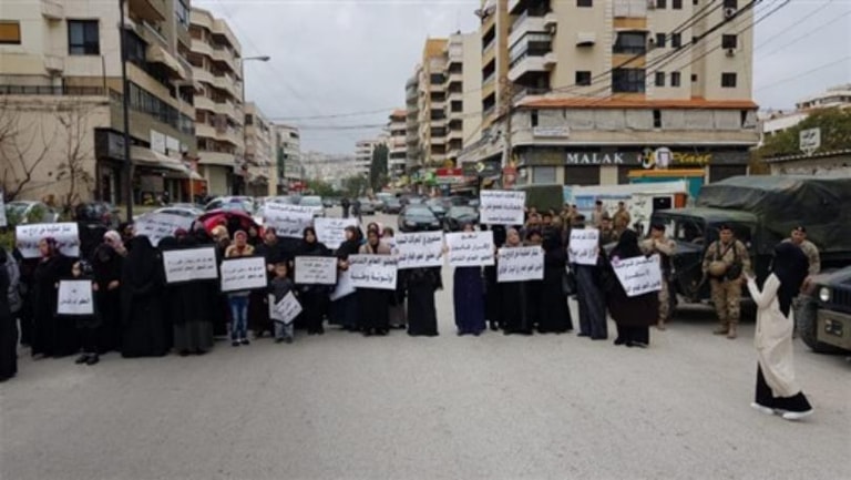 The families of Abra detainees staged a sit-in outside Dar al-Fatwa in the city of Sidon, in the wake of Friday's prayers.