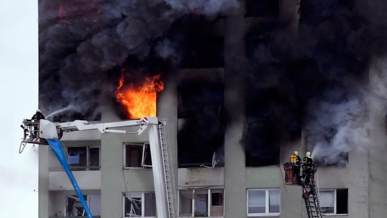 "The blast followed by a fire affected four or five floors" of the 12-storey building, firefighters told local media, adding that the building was in danger of collapsing.