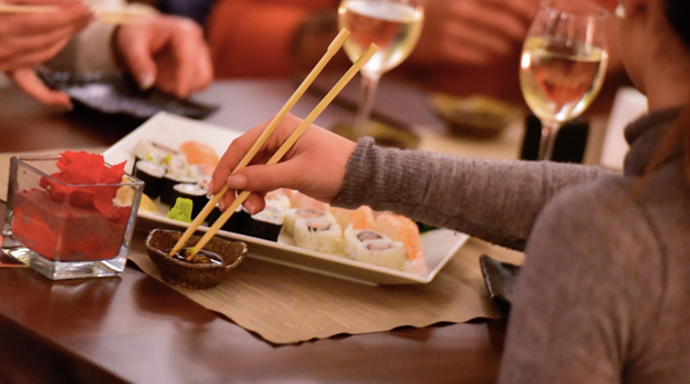 There are plenty of ways to make a sushi dinner a healthy one. Maples chooses brown rice; it's higher in fiber and fills you up more than starchy white rice, which digests fairly quickly and could leave you hungry just a few hours after a sushi feast. Getting sushi wrapped in cucumber or ordering sashimi, thinly sliced fresh fish served without rice, are other ways to make your sushi order healthier, Zeratsky says. Going for rolls or to sushi restaurants where the proportion of fish to rice is higher is an additional way to get more healthy, filling protein and less of these starchy carbs.