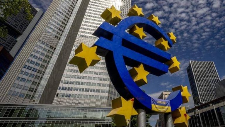 A giant blue euro sculpture in the heart of Frankfurt's financial district has a new benefactor: The firm behind a sharia-compliant cryptocurrency.