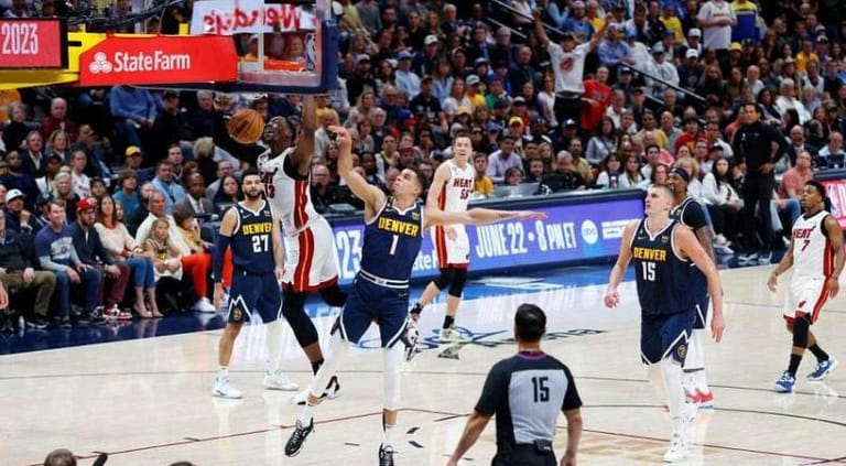 In a game of swinging shifts of momentum, the Heat had the last word, rallying from a 15-point first-half deficit and out-scoring the Nuggets 36-25 in the final period as they silenced the crowd of 19,537 at Ball Arena.
