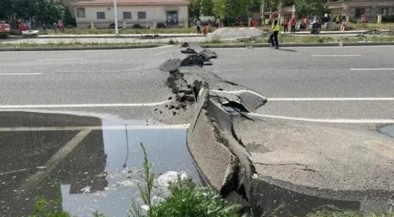 Large fissures appeared on roads near a residential complex in Tianjin's Jinnan district and geological experts said they were likely caused by underground cavities below a depth of 1,300 m (4,270 feet), the Tianjin government said on Thursday on social media.