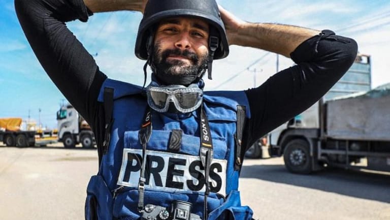 “This is the last time you will see me with this heavy, stinky vest,” Azaiza said in an Instagram video, pointing to his blue press vest, often used by journalists in war zones to identify themselves as non-combatants.