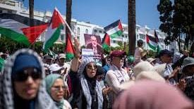 Thousands of people have demonstrated in the streets of Morocco’s capital to call for justice for the Palestinians and for the Moroccan government to revoke its 2020 agreement formalizing its ties with Israel.