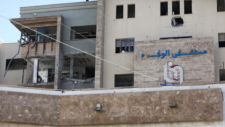 The Israeli military said Hamas militants were the targets of a strike on Gaza City's Al Wafa hospital on Sunday, which the Palestinian civil defence said killed seven people.