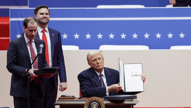 Earlier in the day, Trump, 78, took the oath of office in the Capitol Rotunda, where a mob of his supporters had rampaged on Jan. 6 in an unsuccessful attempt to reverse his 2020 loss to Joe Biden.