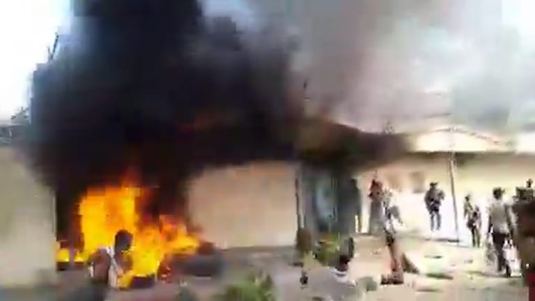 Barrot added that the fire was brought under control after the embassies of Rwanda, France, Belgium, and the United States were targeted, with smoke rising above the French embassy building.