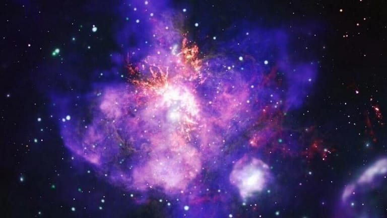 According to NASA, this image was formed from data obtained using the Chandra and Hubble space telescopes, as well as the ALMA radio telescope. NASA noted that the first of these telescopes spent 23 days observing to gather data on massive, binary, and emerging stars, smaller star clusters, stellar winds, and supernova remnants in the nebula.