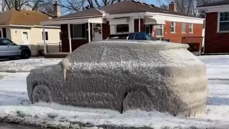 The US state of Michigan has transformed into a frozen landscape, as shown in the attached video.