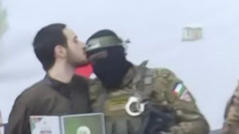 Notably, a freed Israeli was seen kissing the head of an Al-Qassam member during the handover.