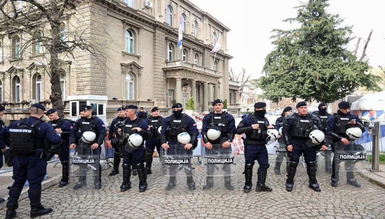 In a bid to avert tensions, students said they had moved a stage at the centre of the planned protest from a plateau in front of the parliament building to Slavija Square, about one kilometre away.