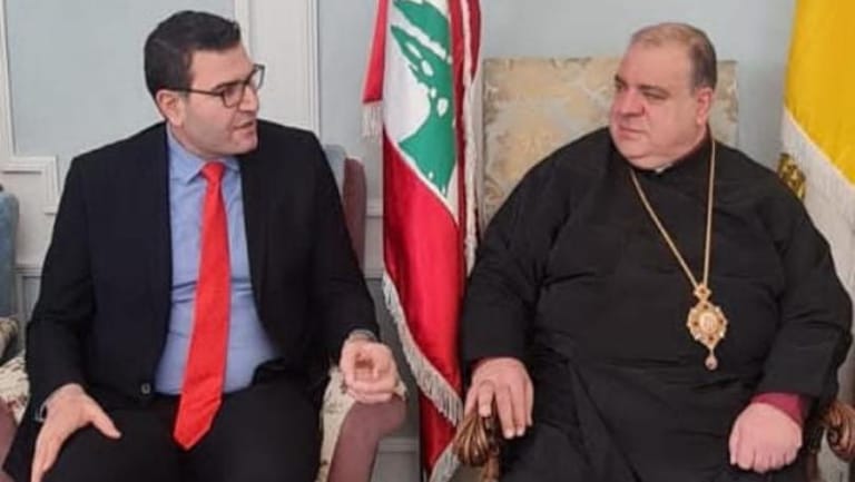Minister of Agriculture, Dr. Abbas Hajj Hassan, on Friday visited Archbishop of the Melkite Greek Catholic Archeparchy of Zahle and Ferzol, Ibrahim Ibrahim, in the presence of Minister of Industry, George Boujikian, and the Director General of the Ministry of Agriculture, Engineer Louis Lahoud.