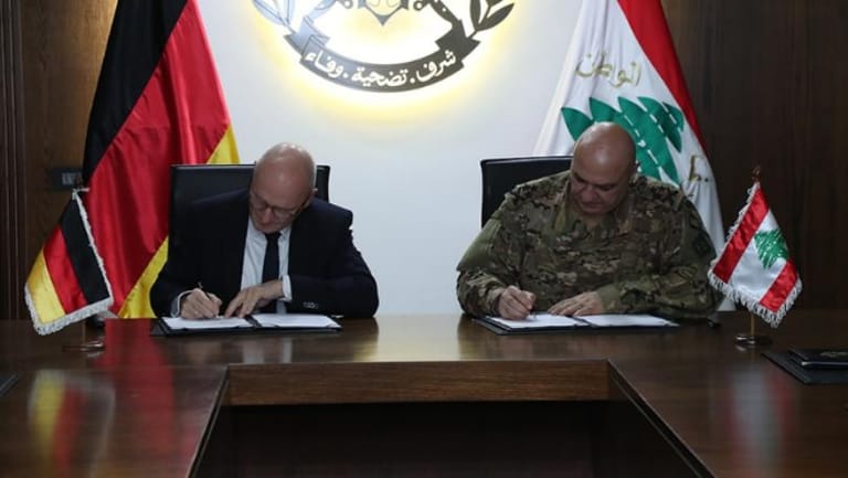 Lebanese Army Commander, General Joseph Aoun, received at his Yarze office on Thursday, German Ambassador to Lebanon Andreas Kindl, accompanied by the Military Attaché, Lt. Col. Heino Matzken.
